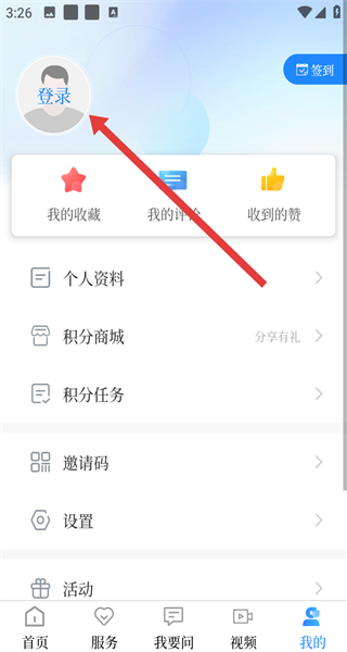 2、在我的主頁中,可以點擊上方登錄按鈕,進行登錄操作。