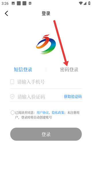 3、跳轉(zhuǎn)到登錄界面中時,可以點擊密碼登錄按鈕,切換登錄方式。