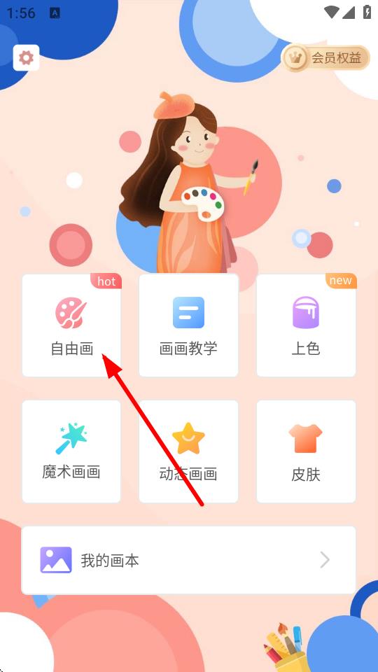 1、在畫畫板APP的首頁,可以選擇點擊自由畫,進(jìn)入繪畫界面。