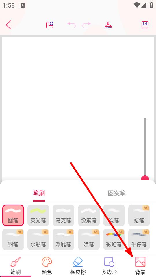 2、在繪畫的界面,需要點擊底部背景的按鈕,展開背景選項。
