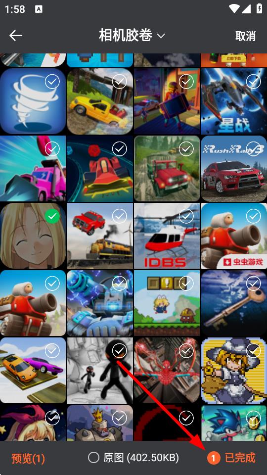 4、在圖片選擇界面,選擇圖片后點擊已完成,完成圖片的導(dǎo)入。