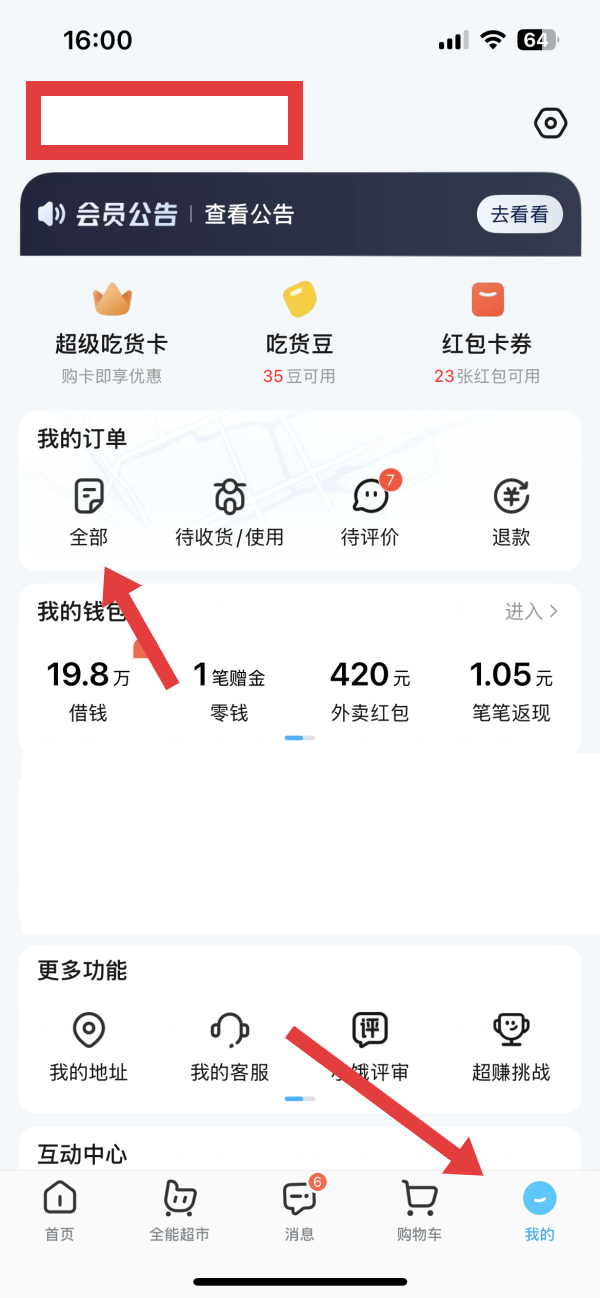1、打開(kāi)餓了么App,點(diǎn)擊底部導(dǎo)航欄的我的,在我的訂單中點(diǎn)擊全部,找到需要申請(qǐng)退款的訂單。