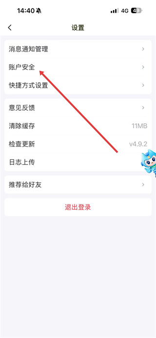 2、在設(shè)置界面里,點(diǎn)擊賬戶安全選項(xiàng),進(jìn)入賬戶安全頁(yè)面。