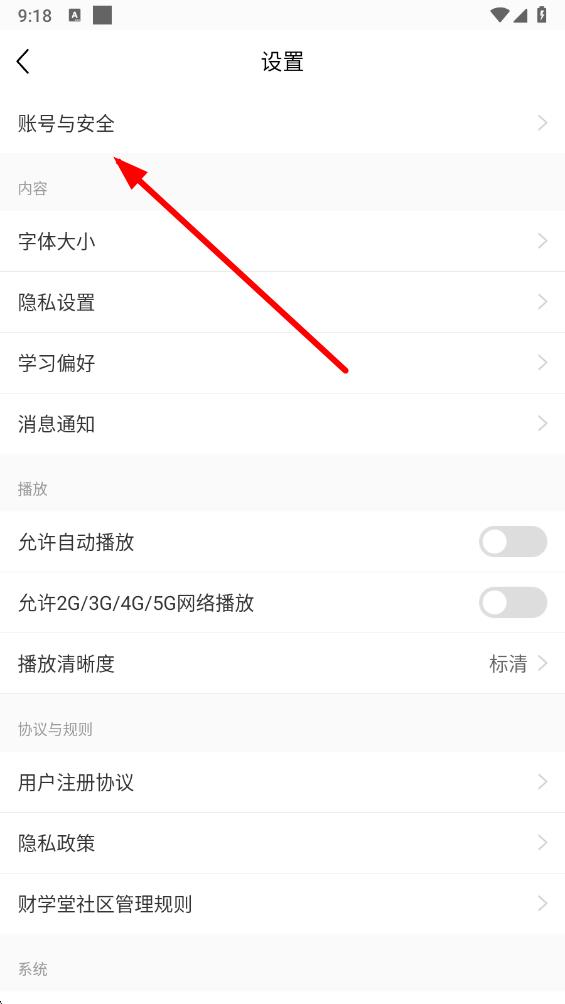 3、在設(shè)置頁(yè)面里,找到并點(diǎn)擊賬號(hào)與安全選項(xiàng),進(jìn)入賬號(hào)安全管理界面。