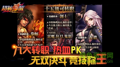真3D、真熱血,2017全民戰(zhàn)斗手游《超神覺醒》,架構(gòu)出神秘的維林諾大陸,人類與魔族為爭奪“魔晶”的紛爭而陷入血戰(zhàn)。游戲設(shè)定了劍士、拳師、女獵三大基礎(chǔ)玩法職業(yè),以及九個轉(zhuǎn)職晉升職業(yè):雷魔、狂刀、鬼影、鐵拳、烈焰、凜風、幽浮、時空、冰舞,豐富的技能組合與職業(yè)專屬的覺醒技,為玩家提供了多樣的戰(zhàn)術(shù)玩法!
