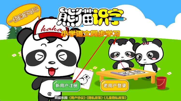 1、打開熊貓識字app,在首頁找到并點擊新用戶注冊按鈕。