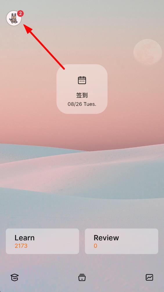 1、打開(kāi)不背單詞app,在主界面點(diǎn)擊左上角的頭像圖標(biāo),進(jìn)入個(gè)人相關(guān)頁(yè)面。
