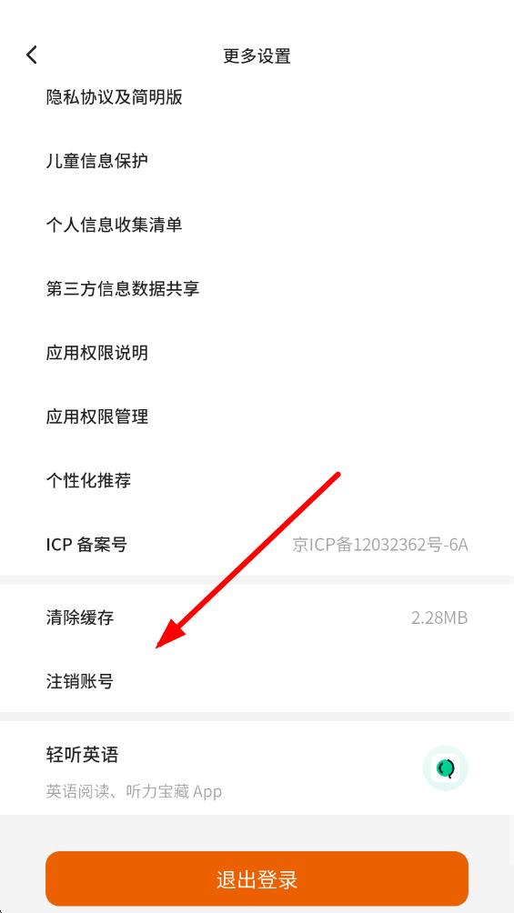 3、在更多設(shè)置頁(yè)面,向下滑動(dòng)找到注銷(xiāo)賬號(hào)選項(xiàng),點(diǎn)擊它,然后按照app給出的提示完成身份驗(yàn)證等操作,即可成功注銷(xiāo)賬號(hào)。