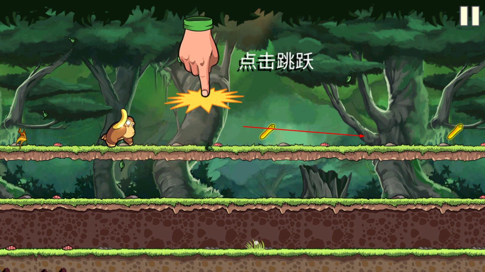 游戲的主角是一只呆頭呆腦的肥猩猩,看見香蕉就毫無節(jié)制的狂吃,直到那堆積如山的香蕉皮鋪天開地如排山倒海般洶涌而至,貪嘴的肥猩猩頓時(shí)傻了眼。怎么辦?跑??!在游戲中,肥猩猩不但要避免被身后的香蕉皮大軍淹沒,還要躲避逃亡道路上的種種障礙,木球、石柱、水潭等等,一不小心跌入這些陷阱可就Game Over了。要想順利的躲避這一切,將這場(chǎng)逃亡之路行的更長(zhǎng)更遠(yuǎn)就要看玩家的反應(yīng)與操控了。游戲共有4種單指操作,分別是點(diǎn)擊跳躍,下劃下滾,長(zhǎng)按滑翔以及右劃加速,玩家控制我們的主角肥猩猩上躥下跳滑行打滾,在不同的動(dòng)作間切換時(shí)非常流暢毫無卡頓,手感非常好。