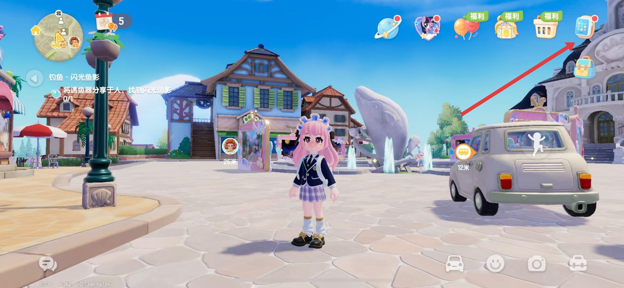 1、進入心動小鎮(zhèn)游戲主界面點擊右上方手表標(biāo)識,打開功能菜單界面。