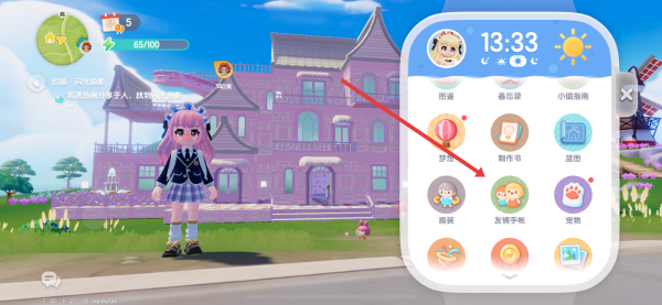 2、在功能菜單界面,找到并點擊友情手帳的選項,進入好友相關(guān)的操作界面。
