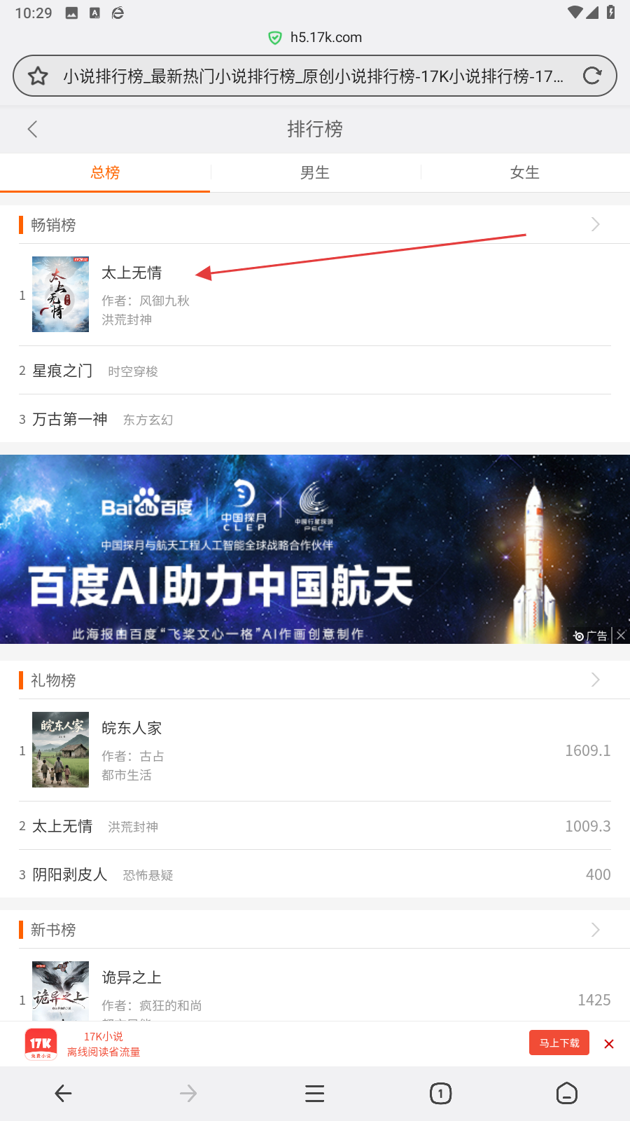 3、進(jìn)入小說排行榜的頁面內(nèi),點擊你想要閱讀的小說名稱。