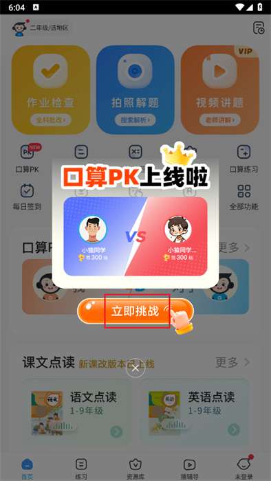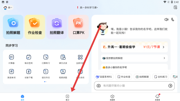 1、在APP首頁點(diǎn)擊底部練習(xí)按鈕,進(jìn)入學(xué)科練習(xí)模塊,可查看課程同步練、VIP知識點(diǎn)講解等學(xué)習(xí)內(nèi)容,開啟針對性練習(xí)。