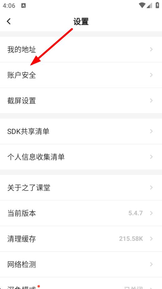 3、在設(shè)置的界面,需點擊賬戶安全按鈕,進(jìn)入賬戶安全頁面。