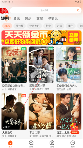 2、進(jìn)入首頁(yè)短劇的頁(yè)面內(nèi),點(diǎn)擊要播放的短劇內(nèi)容。