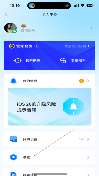 2、進(jìn)入個人中心的界面內(nèi),點擊設(shè)置的功能按鈕。