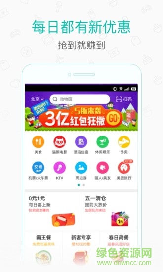 1.吃喝玩樂全都有:精選美食、外賣訂餐、酒店預訂、旅游團購、機票打折、電影特價等團購實惠根本停不下來!