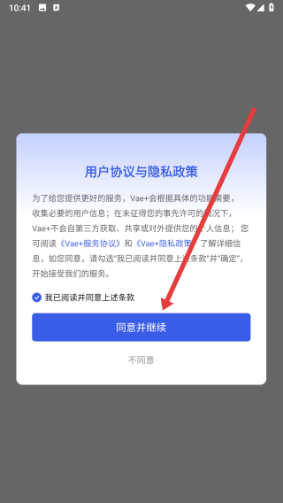 1、在打開app后,可以點擊彈窗中的同意并繼續(xù)按鈕進入使用。