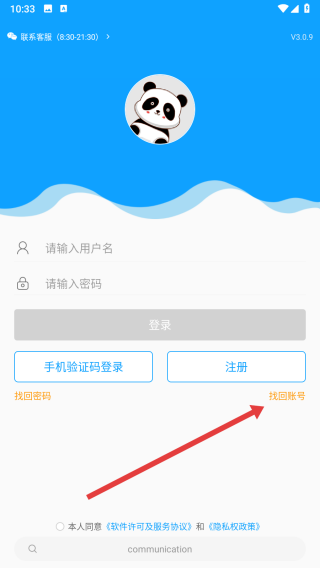 2、在進入到登錄頁面中,若忘記了賬號信息,可以點擊下方找回賬號按鈕解決。
