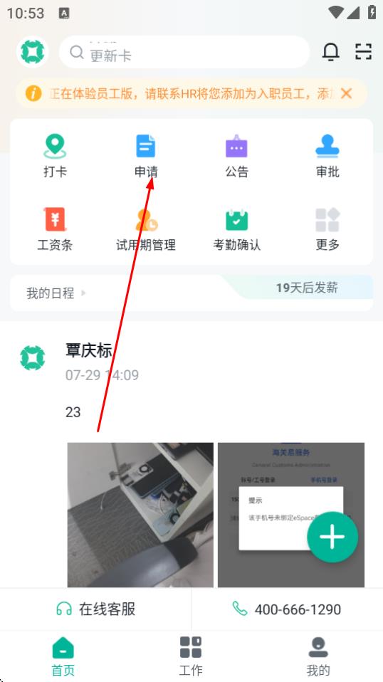 2、進(jìn)入APP首頁(yè),點(diǎn)擊申請(qǐng)圖標(biāo)。