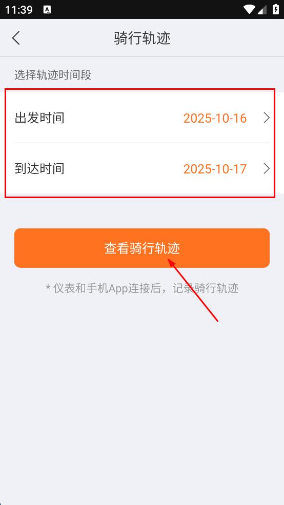 4、在騎行軌跡頁面,選擇好出發(fā)時(shí)間和到達(dá)時(shí)間,然后點(diǎn)擊“查看騎行軌跡”按鈕,查看對應(yīng)時(shí)間段的騎行軌跡。