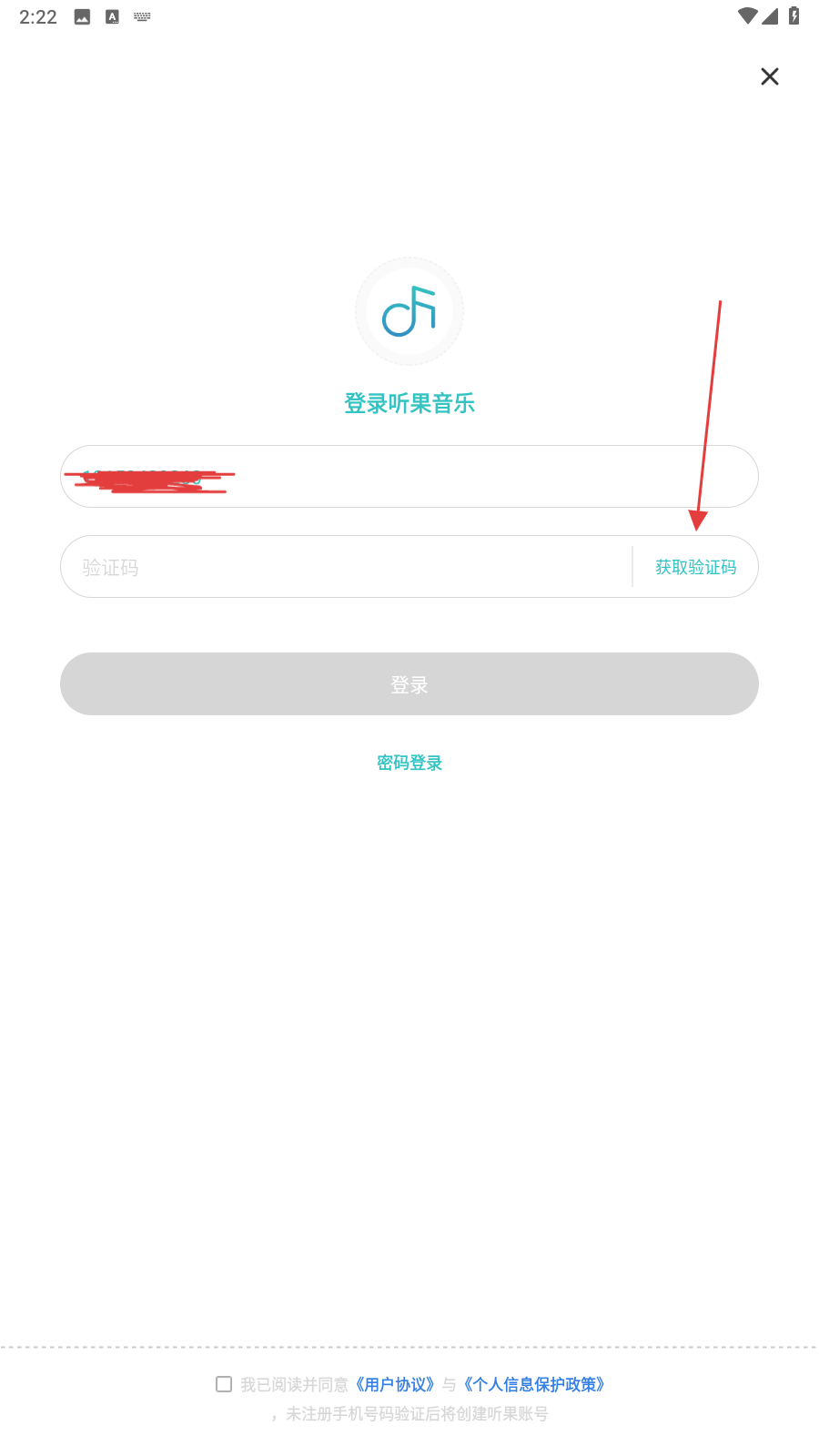 3、在登錄的頁面內(nèi),輸入要登錄的手機號,再點擊獲取驗證碼。
