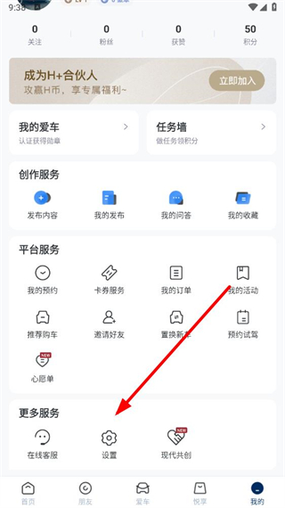 2、在個(gè)人頁面更多服務(wù)板塊,點(diǎn)擊設(shè)置按鈕進(jìn)入設(shè)置界面。