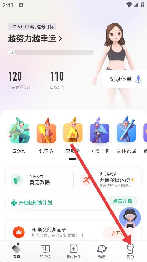 1、打開當(dāng)燃運(yùn)動(dòng)app,點(diǎn)擊底部導(dǎo)航欄我的選項(xiàng)。