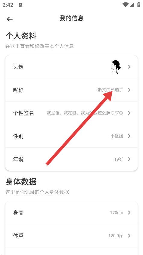 3、在我的信息頁(yè)面里,找到并點(diǎn)擊昵稱選項(xiàng)。