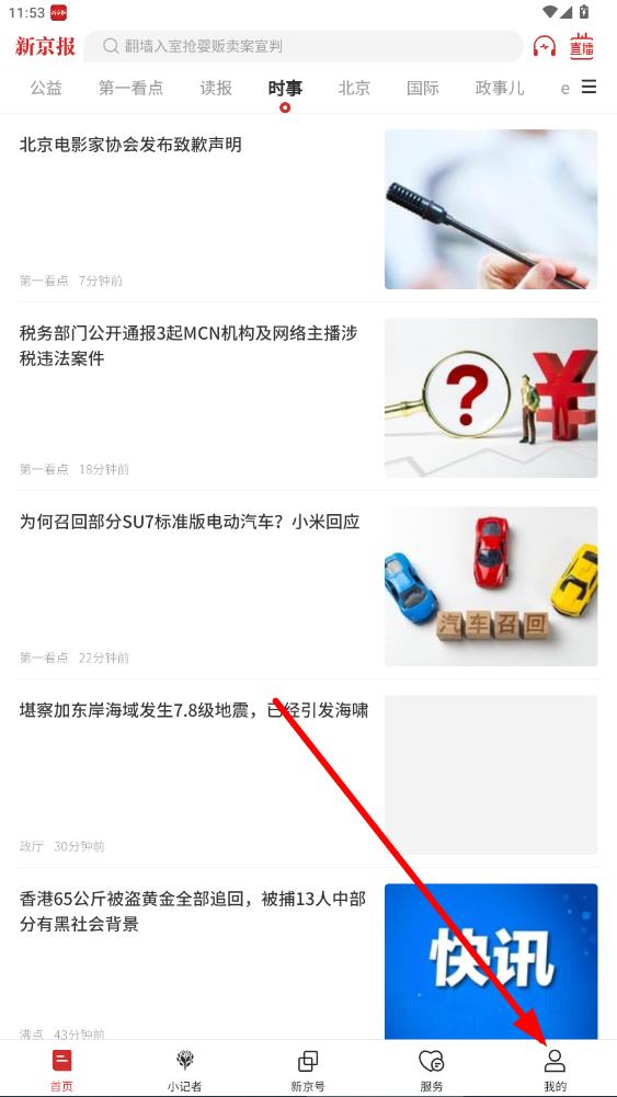 1、打開新京報app,點擊首頁右下角我的。
