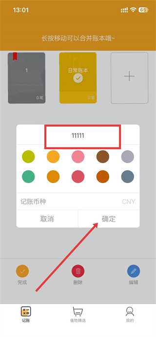 4、輸入新名字,點(diǎn)擊確定按鈕,即可完成賬本名字的修改。