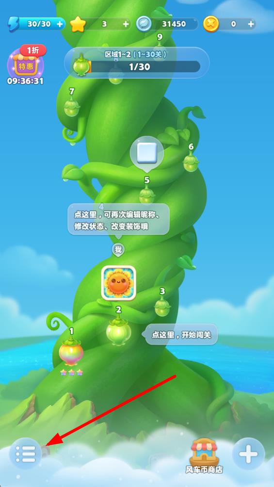 1、打開開心消消樂游戲,點(diǎn)擊游戲界面左下角的菜單圖標(biāo)。
