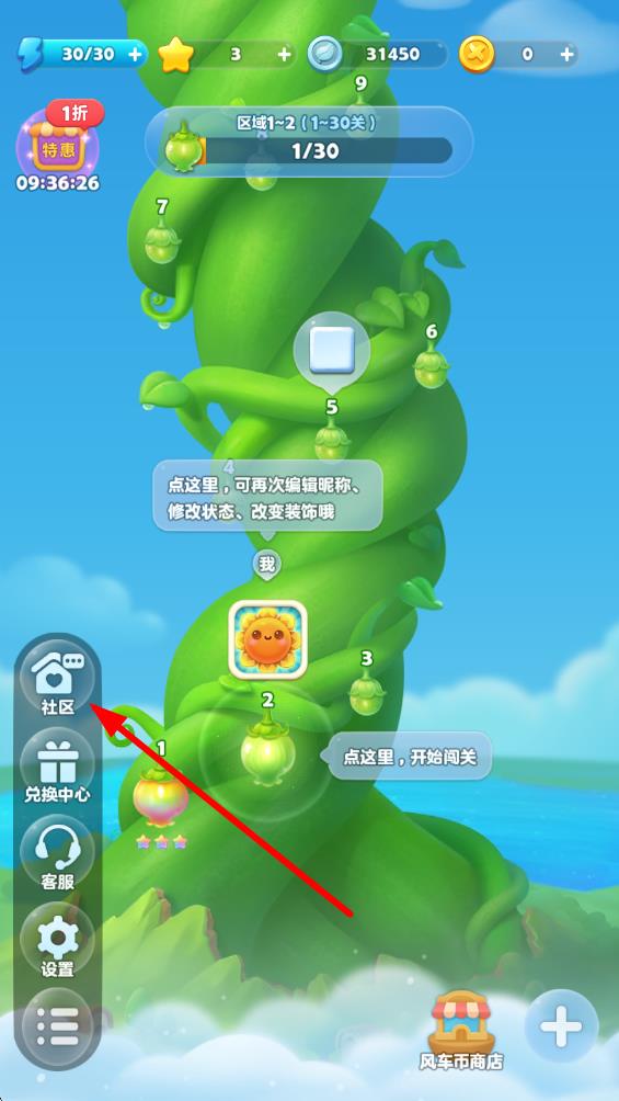 2、在彈出的側(cè)邊欄中,點(diǎn)擊社區(qū)的選項(xiàng)。