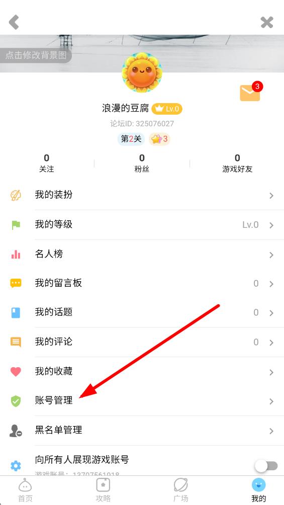4、在我的頁面里,找到并點(diǎn)擊賬號(hào)管理的選項(xiàng)。