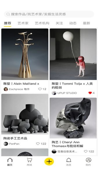 涵蓋繪畫、版畫、雕塑、器物、攝影、潮玩等多種藝術形態(tài)。藝術家們在他條社區(qū)分享作品、創(chuàng)作的美好時刻,給喜愛藝術的藏家、愛好者們帶來豐富的資訊享受。同時他條打破組織的界限,在他條,用戶和藝術家可以互相交流私信,鼓勵藝術家建立社群交流圈,藝術資源共享!