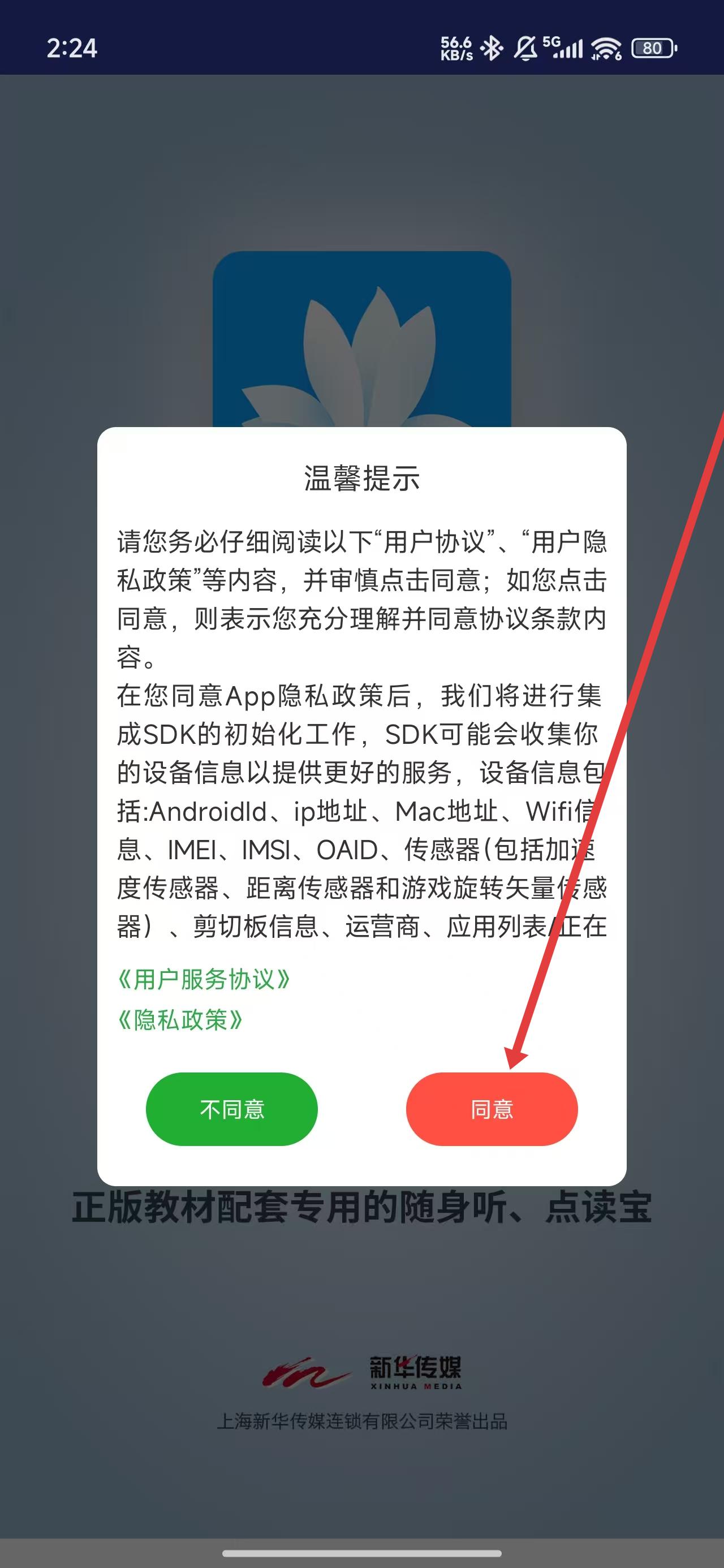 1、在打開申學app后,可以通過點擊彈窗中的同意按鈕,進入使用。