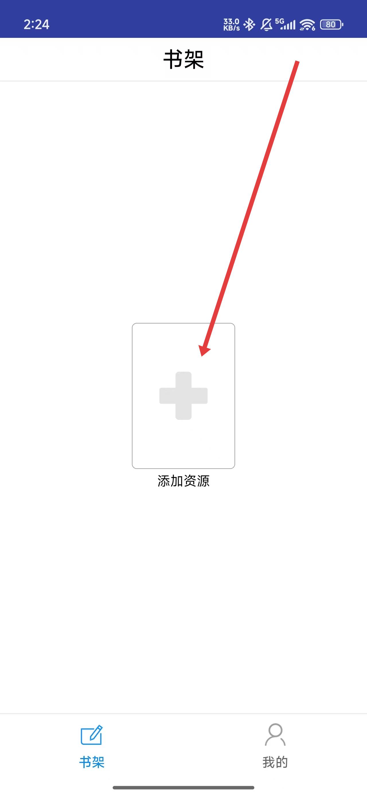 2、在進入到首頁中,可以點擊方框區(qū)域,準備進行添加資源操作。