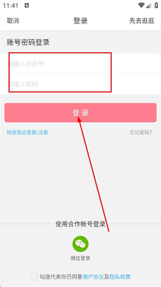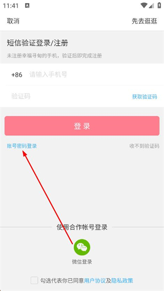 3、進(jìn)入登錄界面,點(diǎn)擊下方的賬號密碼登錄。
