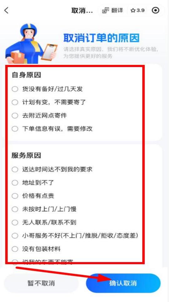 3、在彈出的取消訂單的原因界面,選擇取消訂單的真實(shí)原因,比如自身原因或服務(wù)原因,選擇好原因后點(diǎn)擊確認(rèn)取消按鈕。