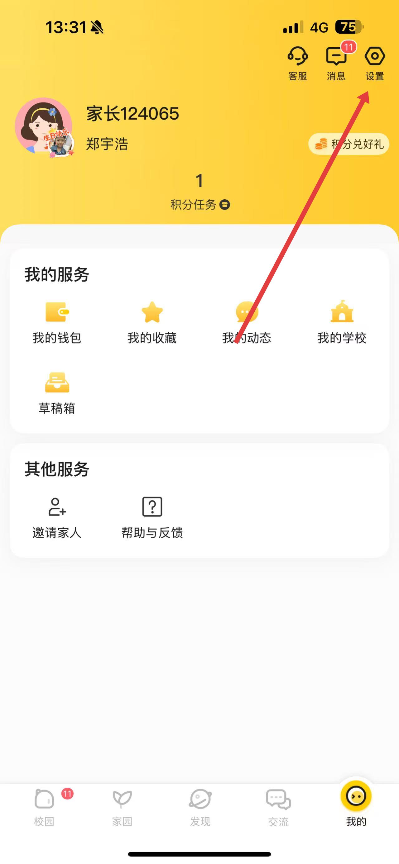 1、在個人頁面右上角,點(diǎn)擊設(shè)置圖標(biāo),進(jìn)入設(shè)置界面。