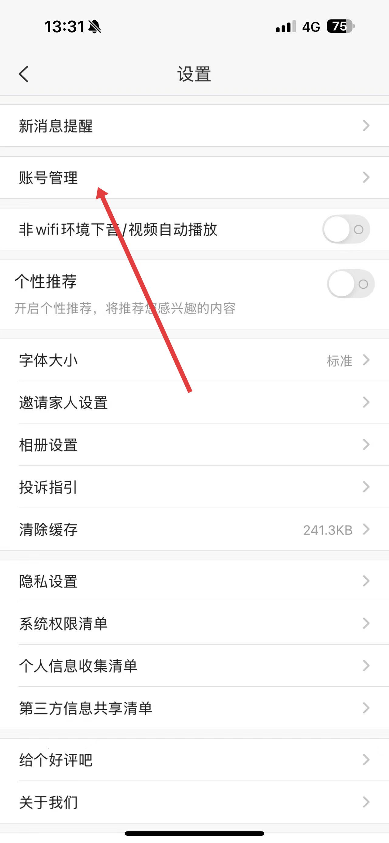 2、在設(shè)置界面中,找到并點(diǎn)擊賬號管理選項(xiàng)。