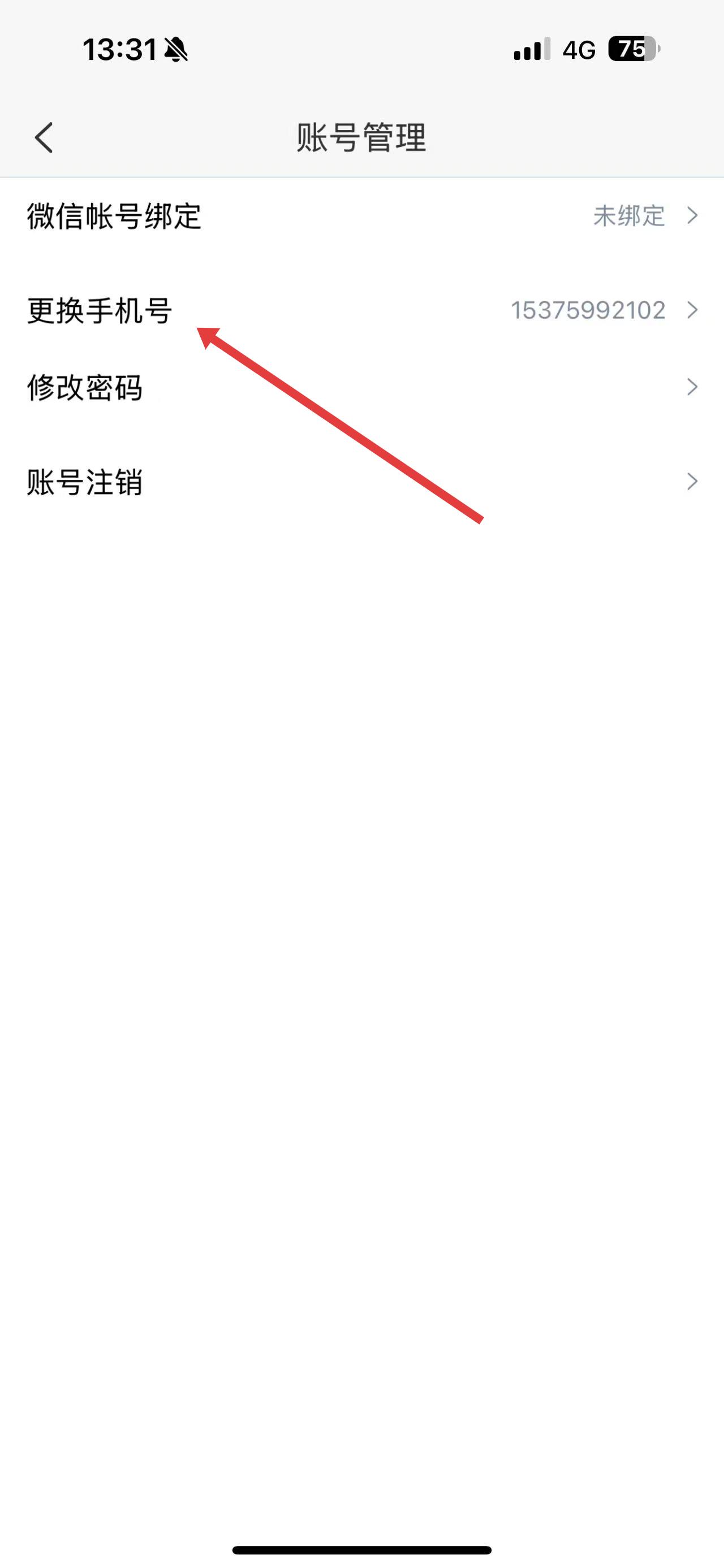 3、進(jìn)入賬號管理頁面后,點(diǎn)擊更換手機(jī)號選項(xiàng)。