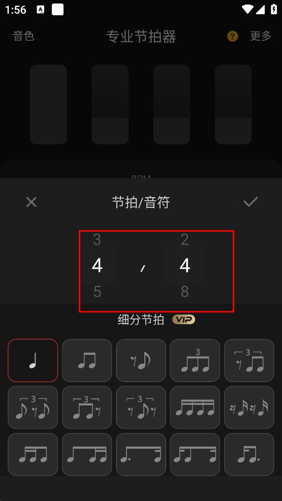 3、在節(jié)拍/音符設(shè)置頁(yè)面選擇合適的節(jié)拍數(shù)值,完成后點(diǎn)擊確認(rèn)按鈕。