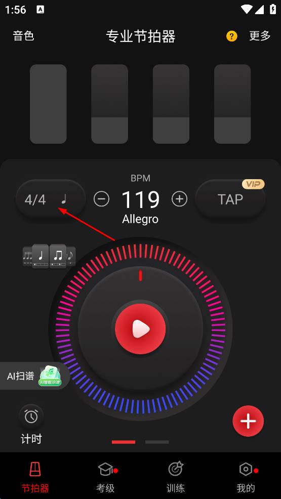 2、進(jìn)入專(zhuān)業(yè)節(jié)拍器頁(yè)面,點(diǎn)擊節(jié)拍相關(guān)設(shè)置區(qū)域,進(jìn)入節(jié)拍/音符設(shè)置頁(yè)面。
