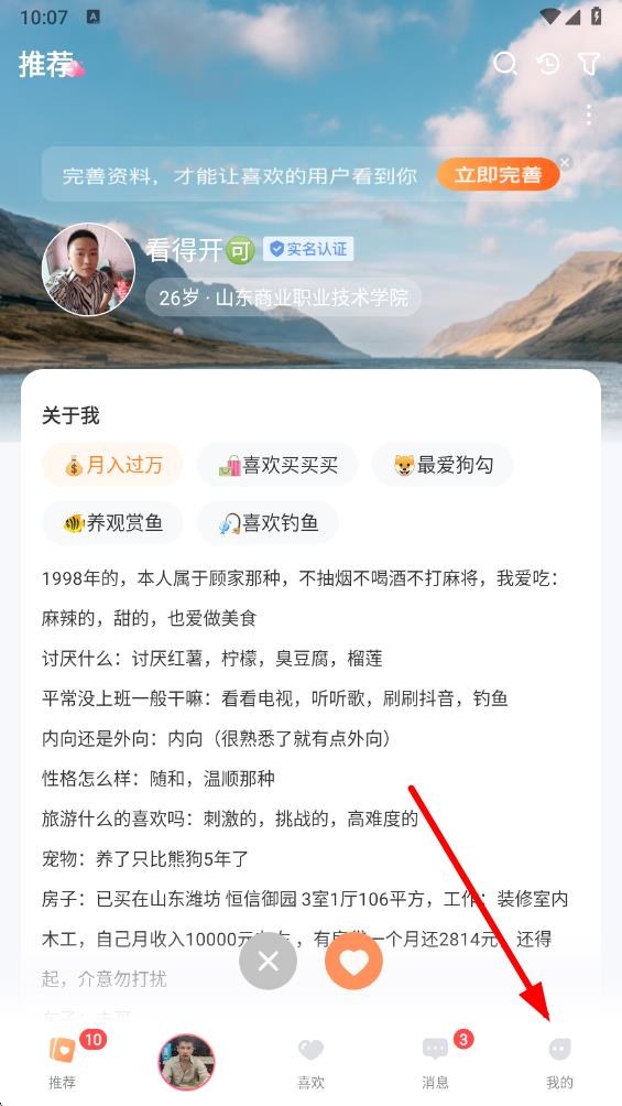 1、打開百合網(wǎng)app,點(diǎn)擊底部導(dǎo)航欄中的我的選項(xiàng)。