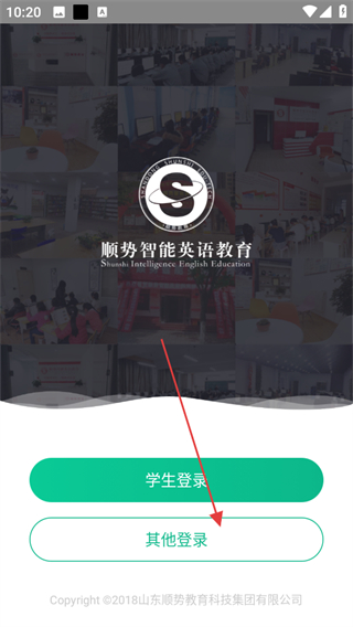 1、打開順勢智能英語APP,在初始界面點(diǎn)擊其他登錄選項(xiàng)。
