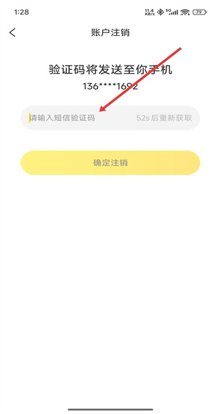 4、可以點(diǎn)擊輸入框填寫(xiě)獲取到的驗(yàn)證碼后,點(diǎn)擊確定注銷(xiāo)按鈕,即可完成注銷(xiāo)操作。