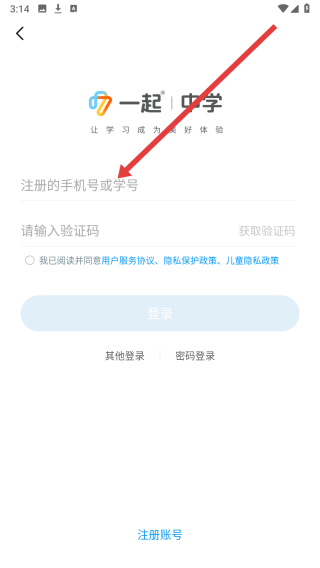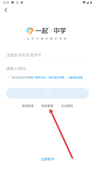 2、在一起中學(xué)登錄頁(yè)面中,可以點(diǎn)擊下方短信登錄按鈕,切換登錄方式。