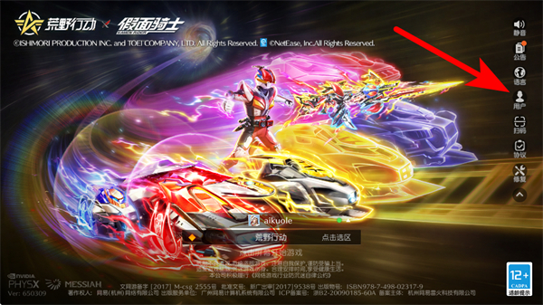 1、在游戲登錄的界面,需點擊右側(cè)賬戶按鈕,進(jìn)入用戶中心。