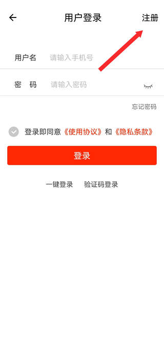 2、在用戶登錄頁面,點(diǎn)擊右上角注冊(cè),進(jìn)入注冊(cè)信息填寫頁面。